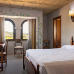Les seves habitacions són còmodes i lluminoses, perfectes per descansar després d’un dia de rutes, tastos i visites culturals. L’establiment disposa també d’una agradable piscina exterior amb vistes a les vinyes, ideal per relaxar-se a l’estiu.