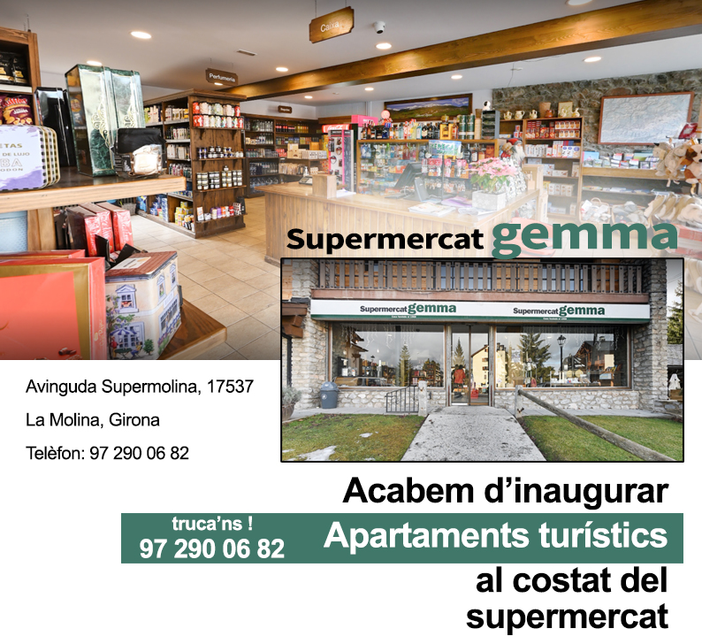 Amb un horari ampli i un servei proper i familiar, al Supermercat Gemma volem fer-te la vida més fàcil durant la teva visita a La Molina. Passa a veure’ns i descobreix tot el que tenim per a tu!